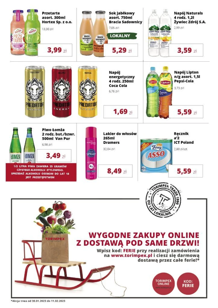 Скористайтеся акціями в Torimpex від 2023-01-30 до 2023-02-11. В акційній ціні ви знайдете такі товари: