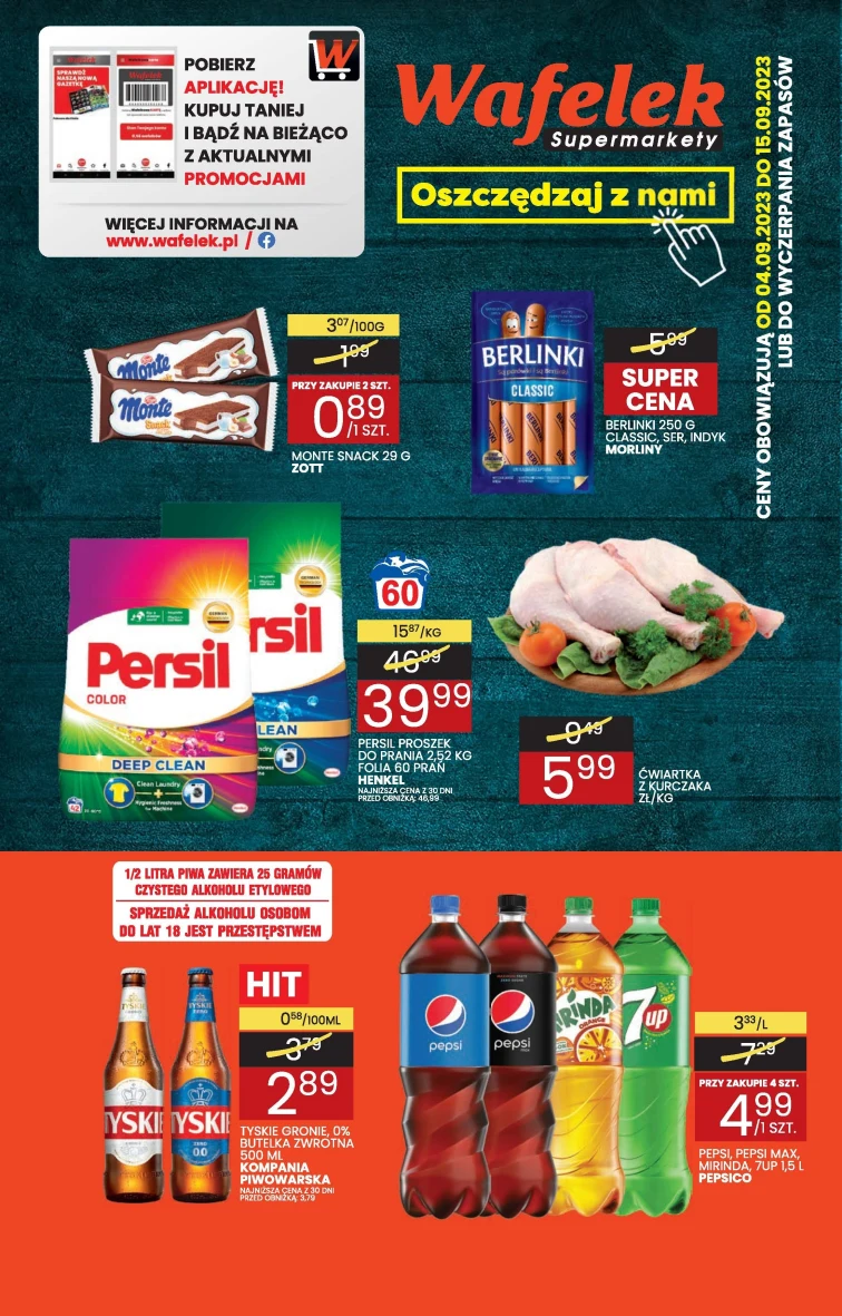 Акції в магазинах Wafelek діє з 2023-09-04 до 2023-09-15. Переглядайте акційну газетку Wafelek а шукайте найкращі акції на: